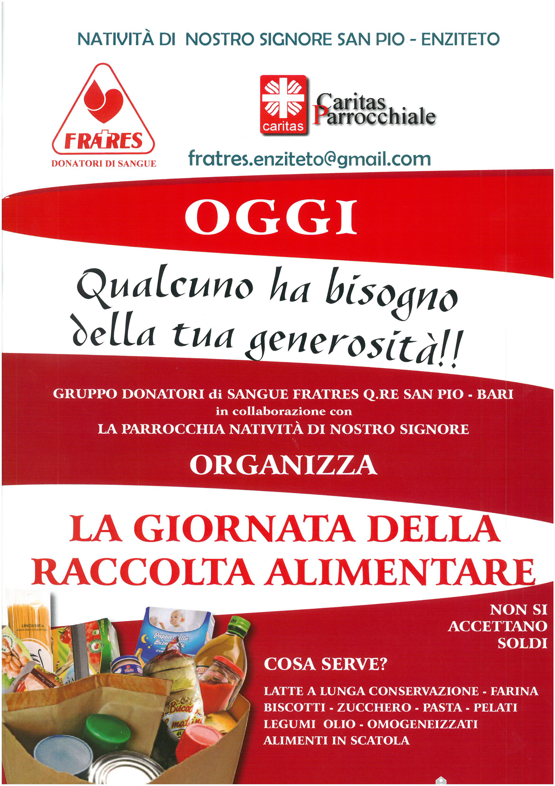 Inoltre, in collaborazione con l’associazione Fratres Donatori di Sangue verrà effettuata una raccolta alimentare per i bisognosi del quartiere San Pio. Sarà presente presso la nostra reception, sino al 20 dicembre un banchetto per la raccolta.